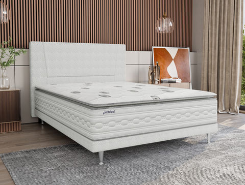 O brilho do conforto absoluto. Com molas ensacadas que proporcionam adaptação ao corpo e espuma HR para um suporte excepcional, o Safira oferece um descanso reparador. Seu visual em azul e branco traduz leveza e modernidade, ideal para quem busca um ambiente requintado e acolhedor.